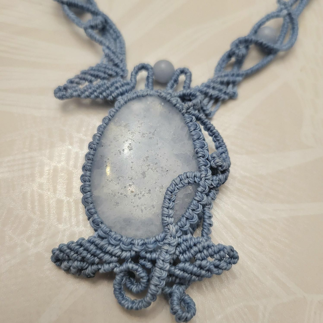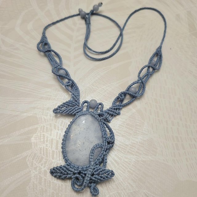 Collier en micro-macramé tissé avec du fil Linhasita.