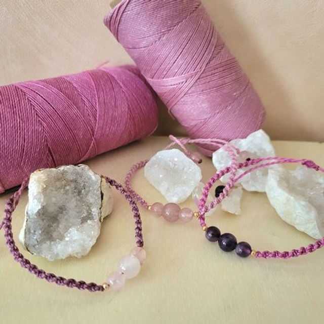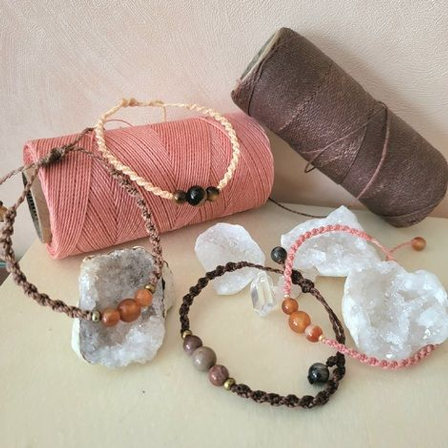Vous pourrez découvrir le micro-macramé pendant cette bulle créative d'une heure en réalisant un joli bracelet avec des perles en pierres naturelles.